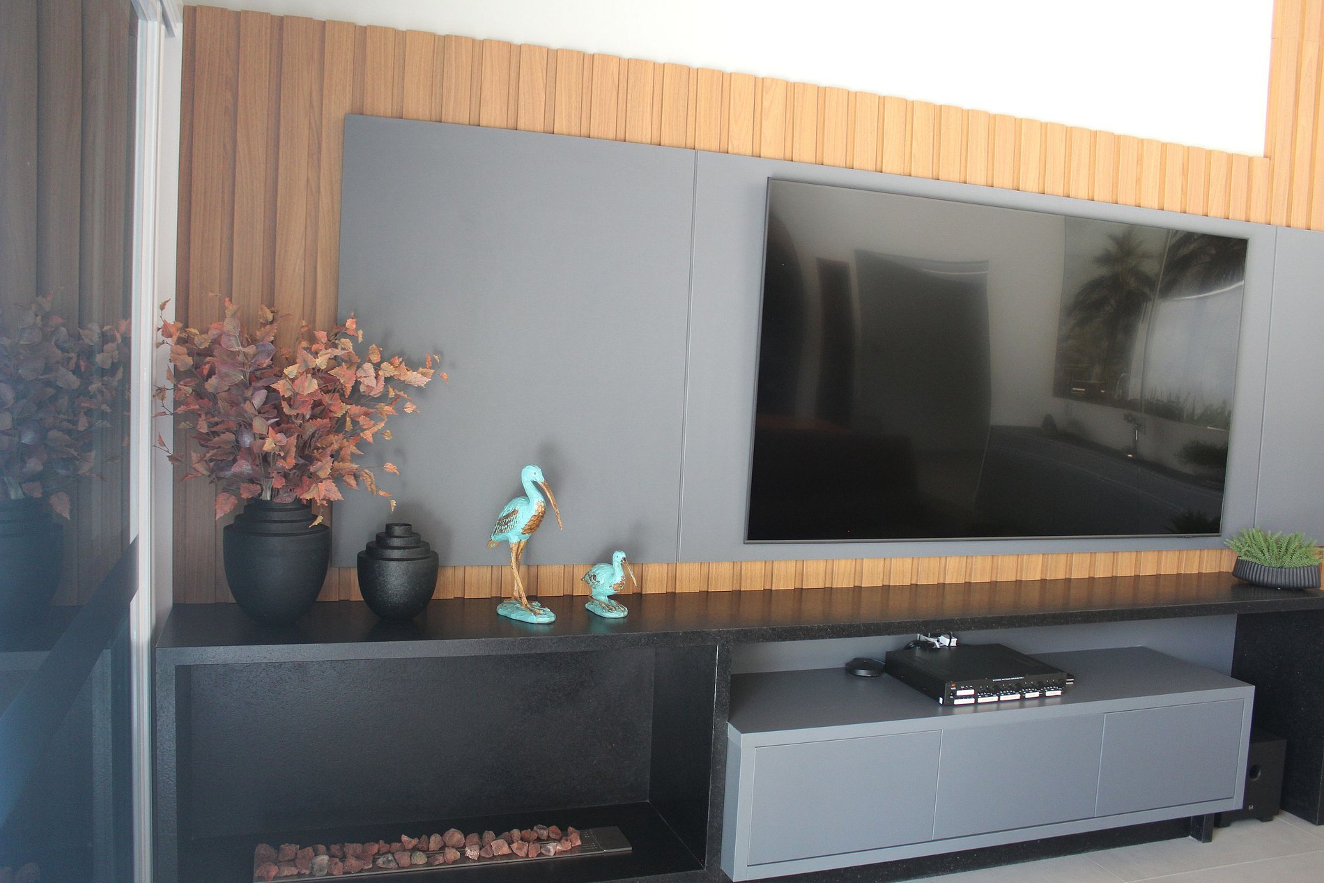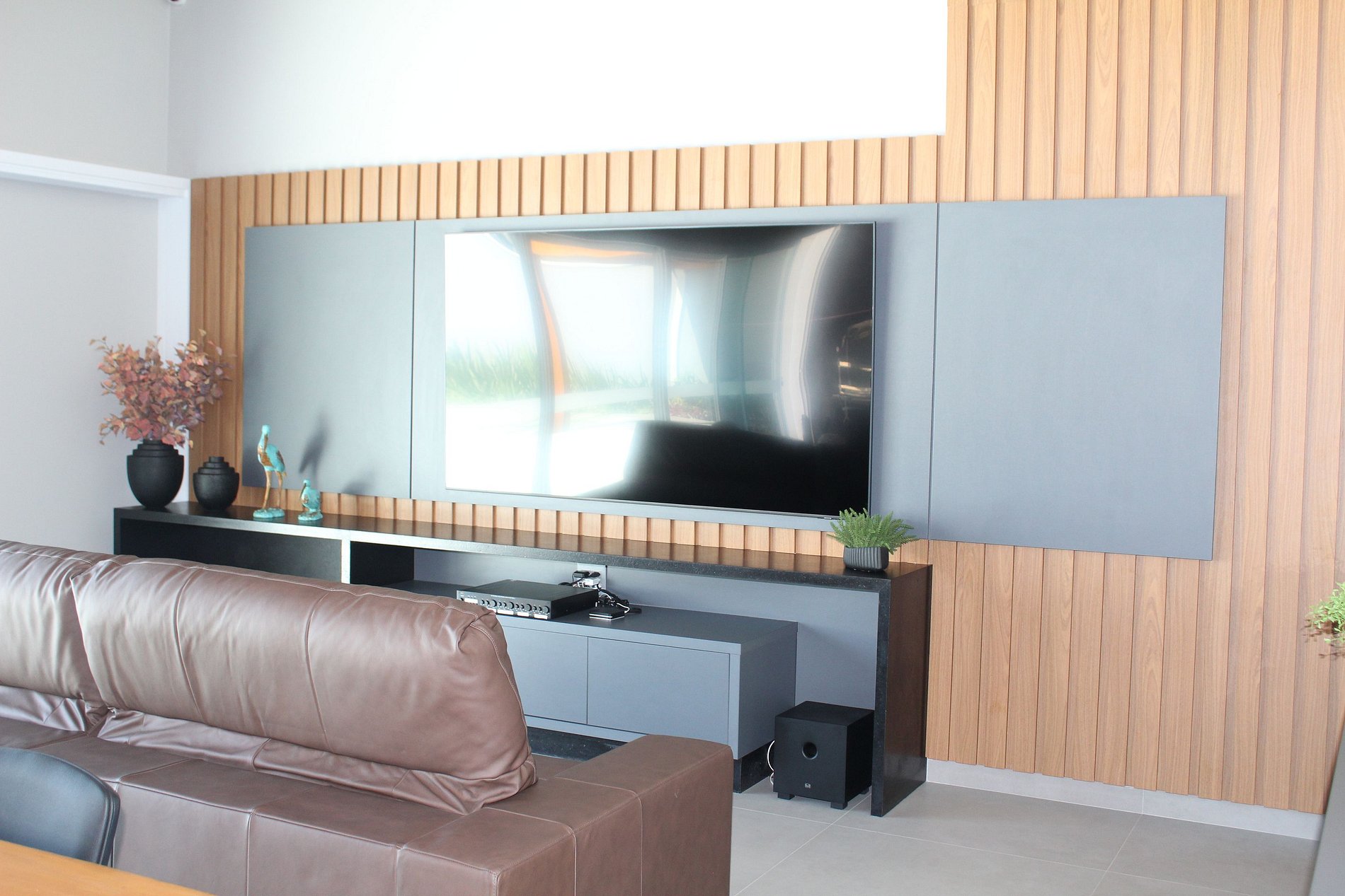 - Home theater com sistema de som surround e TV 65";